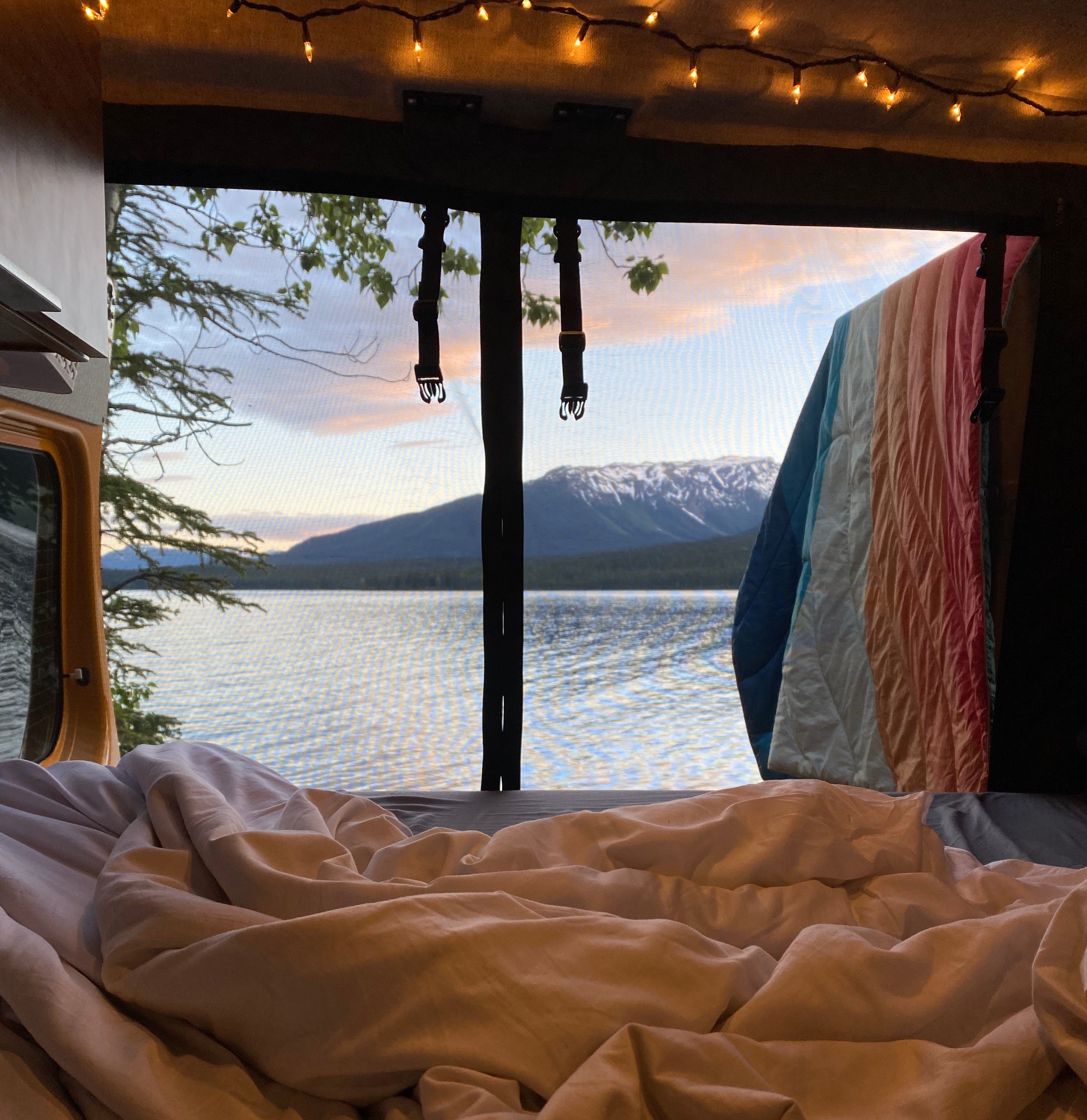 We’ve had their bamboo duvet cover since March 2023 and recently got a waterproof, washable rug for our van’s “hallway” space.