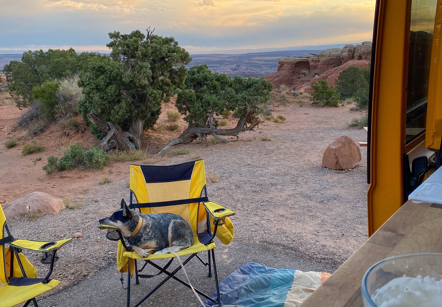 We had a similar experience at Arches National Park last month. A friendly-edging-on-boisterous campground host strode into our site while Scout was sunbathing. “How sweeeeet!” she cooed while stretching a hand towards our cattle dog. In response Scout growled, head down, ears back, eliciting a startled “oh!” from the visitor. While I’ll admit I felt a little bad—the woman wasn’t trying to be anything but kind—I couldn’t help but inwardly laugh. You trotted up to an unfamiliar animal with your limbs extended and voice high. What do you expect? It’s normal for a dog (especially a cattle dog) to be like “woah, check yourself” in this situation.
