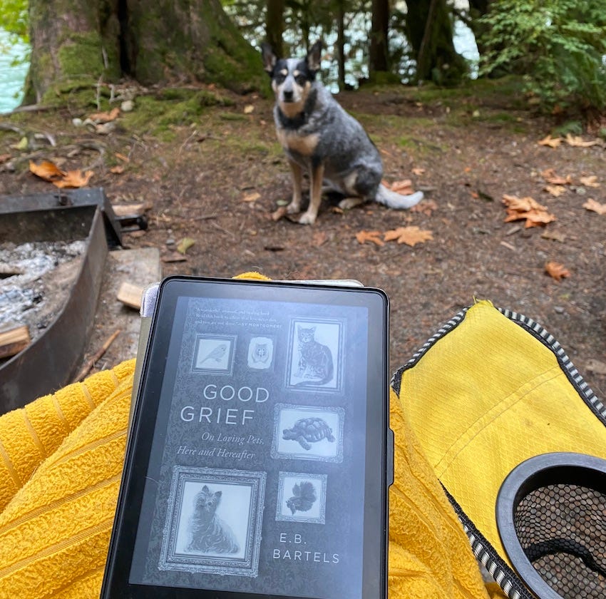 This week I’ve been revisiting Good Grief: On Loving Pets, Here and Hereafter by E.B. Bartels. I blew through the book on my first read because I wanted to finish it before I had the opportunity to hang out with E.B. in person (which was exactly as delightful as I dreamed). Now I’m taking it more slowly and intentionally, giving it more gravity. When a passage makes me cry—as many of them do—I sit with the tears instead of rushing onto the next section.
