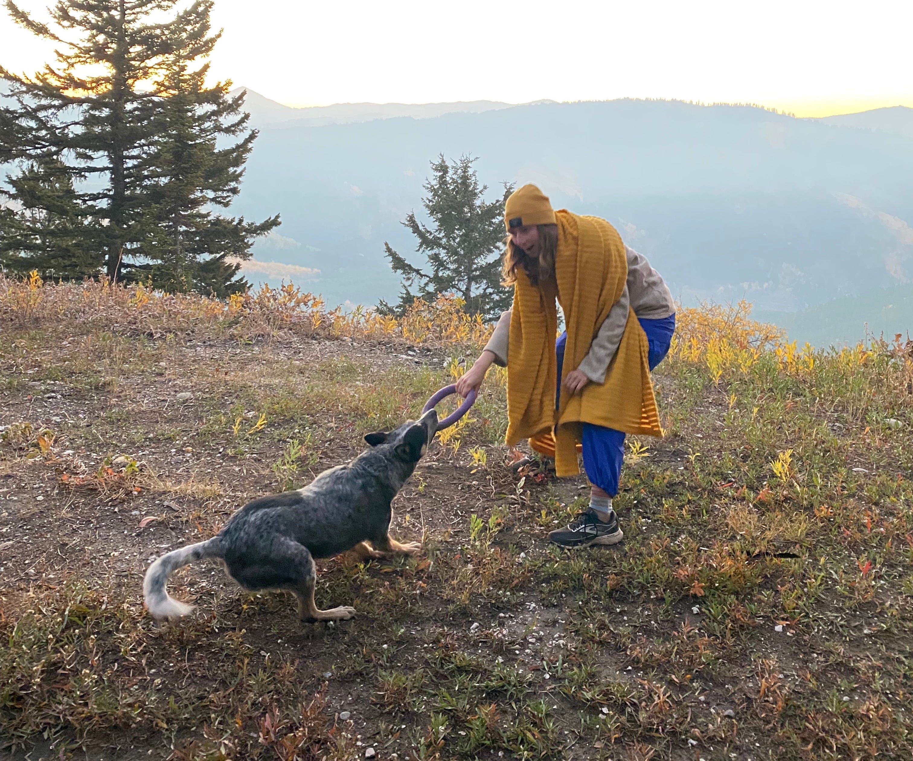 I found my little family waiting for me beyond two curves in the road. Scout tossed her puller ring in the air when I approached; I could have cried that she’s internalized my play is the way to relieve stress lesson so deeply. We tugged for a minute. We stood overlooking the sun’s early light in the valley below. We went home.