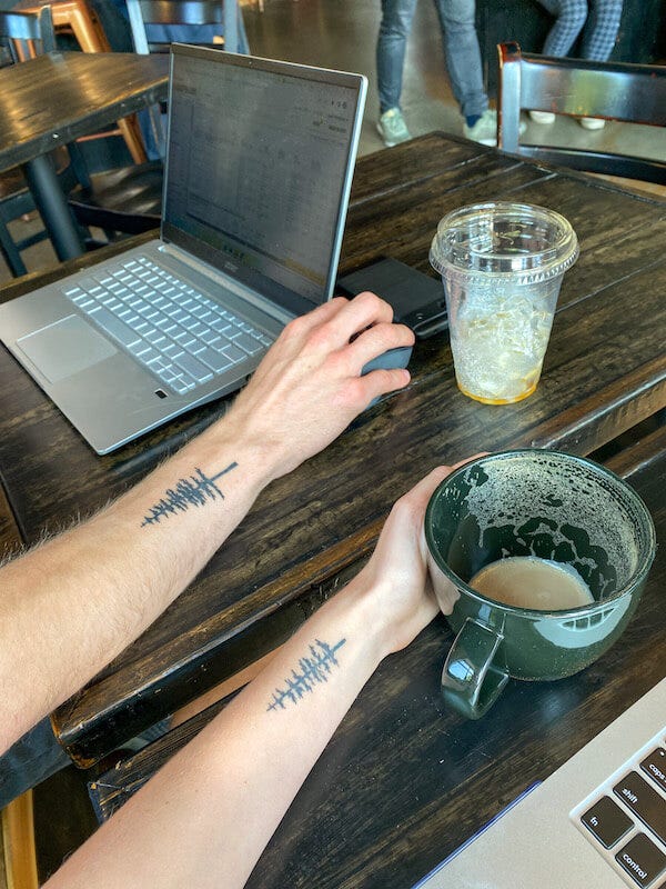 Matching conifer tattoos to memorialize a poem Sean wrote me years ago